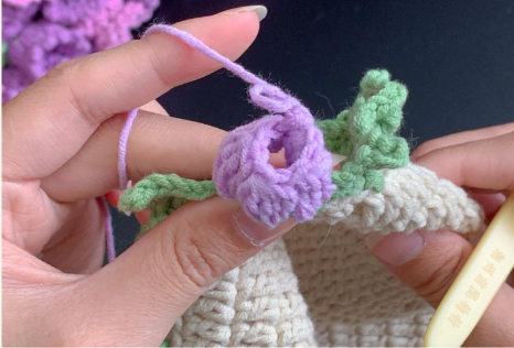 ✔️ 5-ply milk cotton yarn: White (550g), Green (100g), Purple (200g)