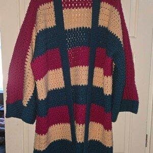 Materials: Designed for use with worsted weight yarn—the perfect material to complete the cardigan in just a weekend.